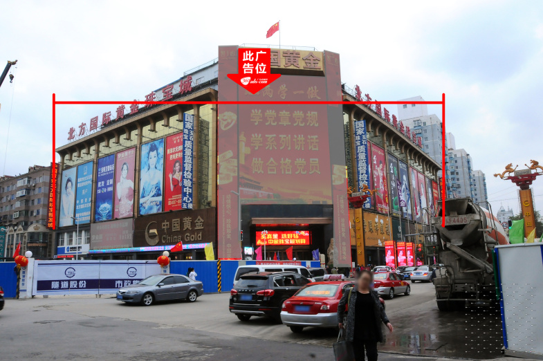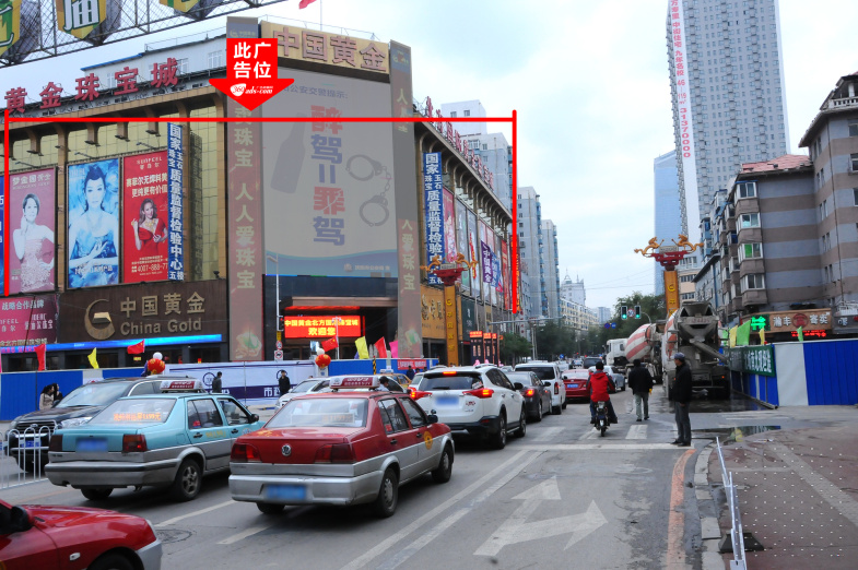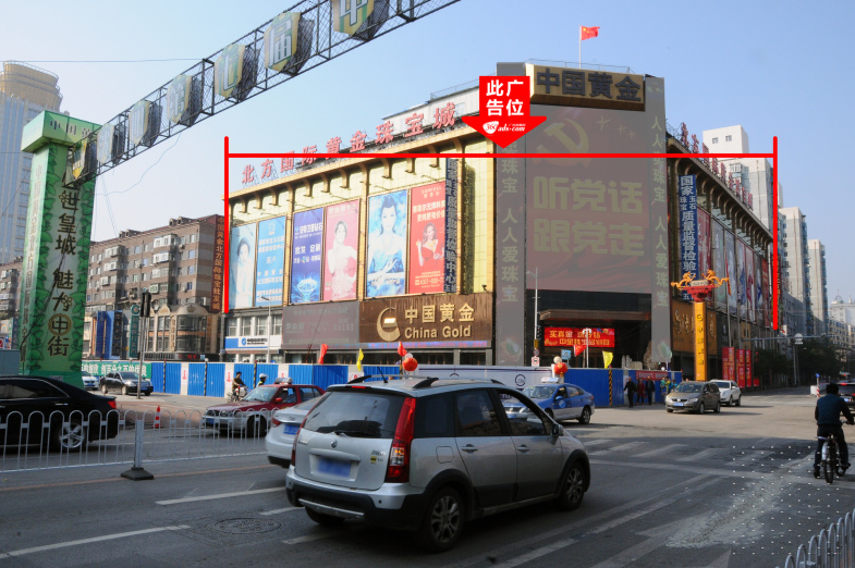 西顺城街与小西路交汇处北方黄金珠宝城墙面大牌