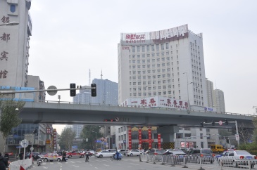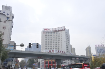 惠工街与哈尔滨路交汇处一家春酒楼楼顶大牌